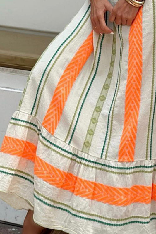 Tassel Striped Tie Neck Batwing Sleeve Dress