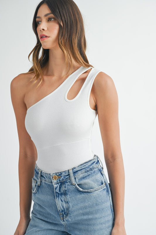 MABLE One Shoulder Ribbed Cutout Detail Bodysuit